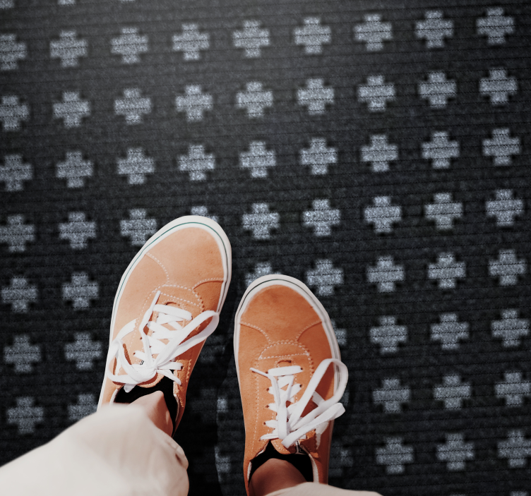 Poročilo: R18927Oblikovanje vključuje ponovljen vzorec križa v različnih odtenkih črne in sive. Geometrijska postavitev ustvarja vizualno udaren učinek, kar povečuje njeno sodobno privlačnost. Igra barv dodaja globino, zaradi česar je to očarljiva izbira za različne okolice.