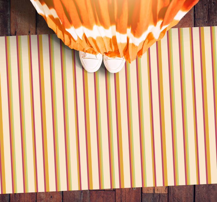 Vstopite v svet čarobnosti in stila z Multi-striped elegance vinilno preprogo s črtami, ki prinaša edinstven dizajn v vaš dom. Ta preproga se ponaša z navpičnimi črtami, ki se prepletajo v očarljivem vzorcu, kjer se rumena, rdeča, zelena in bež barva združujejo v harmonično celoto. Vsaka vrstica prinaša svoj pečat elegance in modernosti, kar je idealno za vsak prostor.