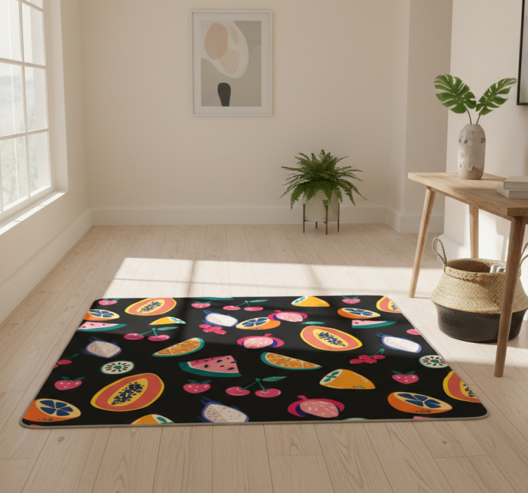 Naravne vinilne preproga večbarvno sadje na črni podlagi