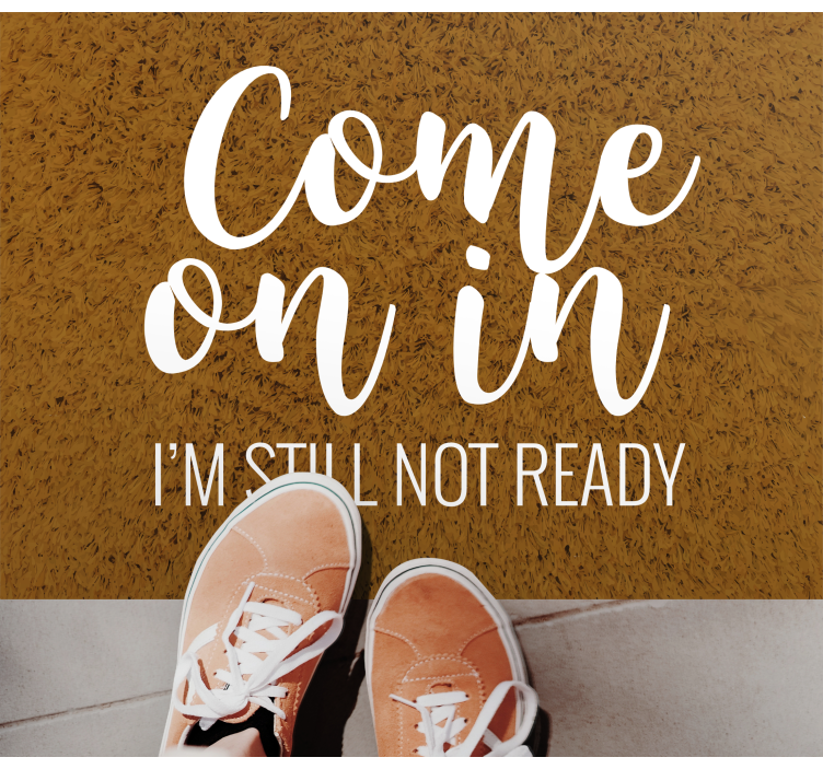 V dizajnu je na rjavem ozadju s krznenim učinkom z belimi črkami napisano besedilo "daj noter, še vedno nisem pripravljen".