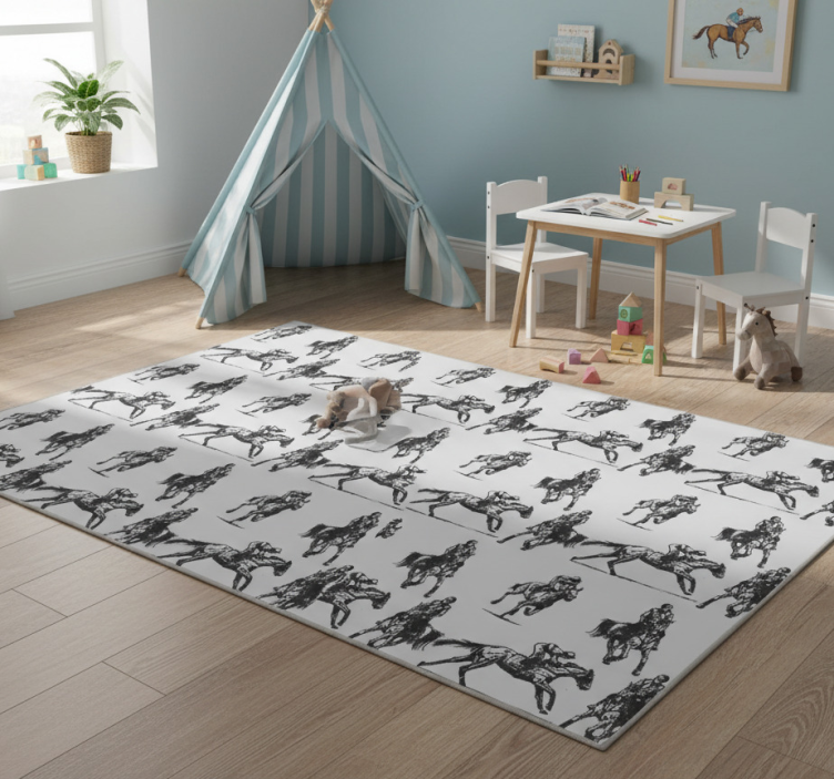 Tepih z živalskim potiskom sivi zahodni konji