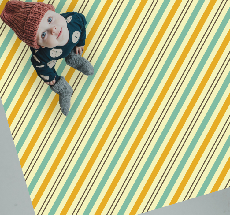 Vinilna preproga s črtami Živahen črtast koncept prinaša živahnost in igrivost v vsak prostor. Njen edinstven dizajn se ponaša s črtami, ki se raztezajo diagonalno in ustvarjajo dinamičen vzorec. Barvna kombinacija rumene in modre dodaja energijo ter svežino, kar bo zagotovo pritegnilo pozornost in osvežilo vaša tla. Ta črtasta preproga je idealna izbira za moderni dom, kjer želite doseči ravnotežje med stilom in udobjem.