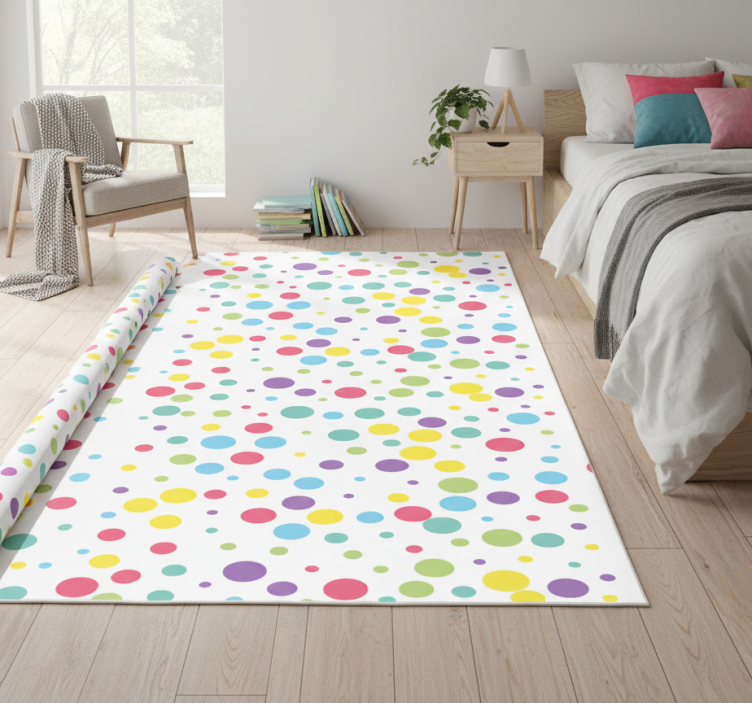 Vinilne preproge za spalnico v barvitih pikah